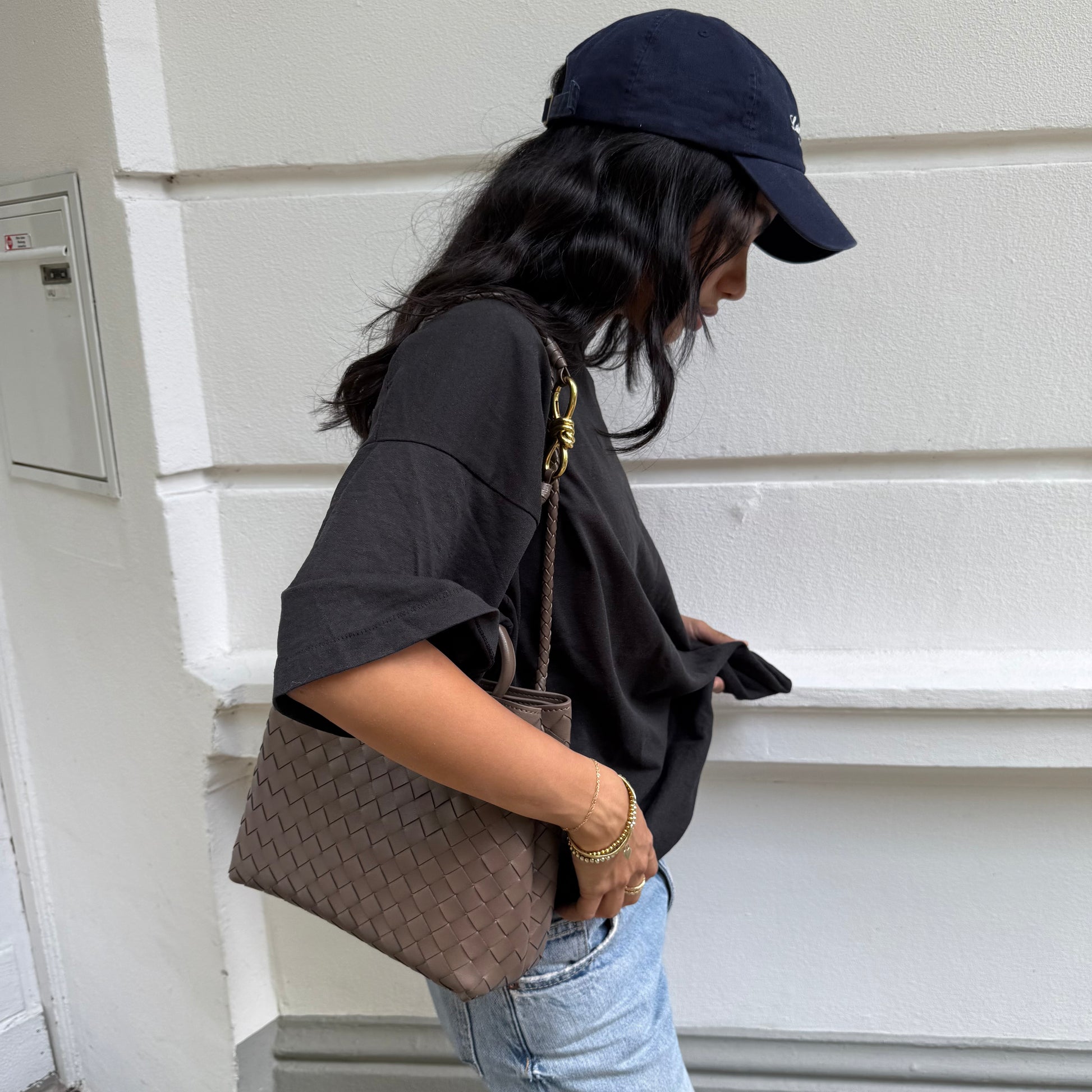 Handmade woven bag crafted from genuine leather. Can be worn over the shoulder, crossbody, or carried by hand. A versatile bag for many occasions, featuring a magnetic closure and a single interior compartment with a zip pocket. Medium size, perfect for everyday use or for a more polished evening look.