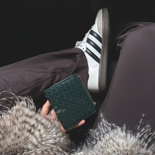 Klein, aber mit Charakter: Die kleine Reza-Version bringt das ikonisch gewebte Leder in ein handliches Format. Aufklappbar, übersichtlich, stilvoll – für alle, die Ordnung lieben, aber nicht viel mitnehmen wollen.