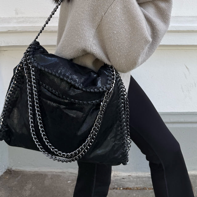 The “Zohal” - timeless, elegant, and always on trend. Made from high-quality faux leather and featuring a striking metal chain, this bag adds a touch of luxury and rock-chic to your look.